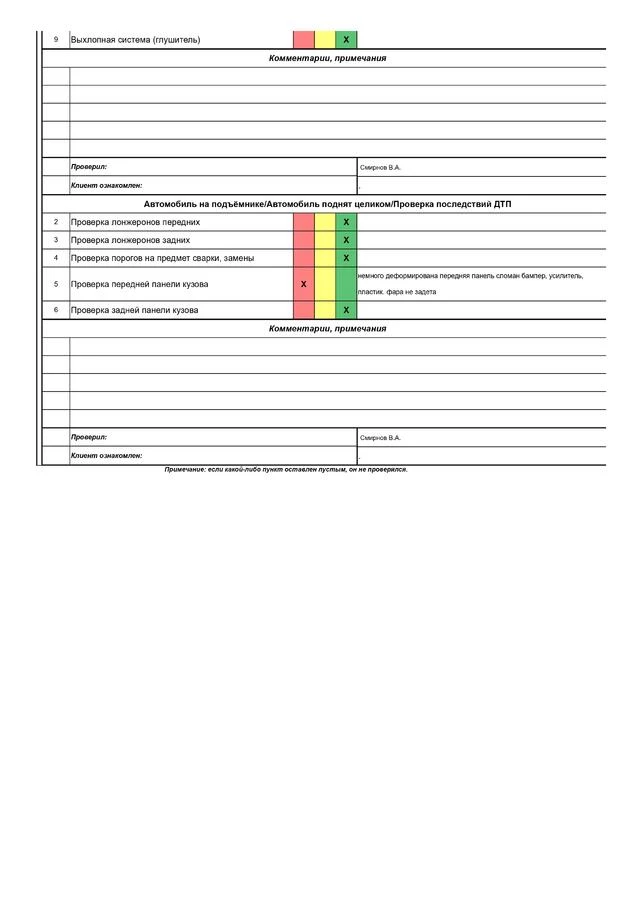 - Исправлены все выявленные недостатки с использованием только оригинальных запасных частей